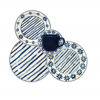 Aparelho De Jantar E Chá 20 Peças Biona Redondo De Cerâmica Azul Donna 24 Margaridas